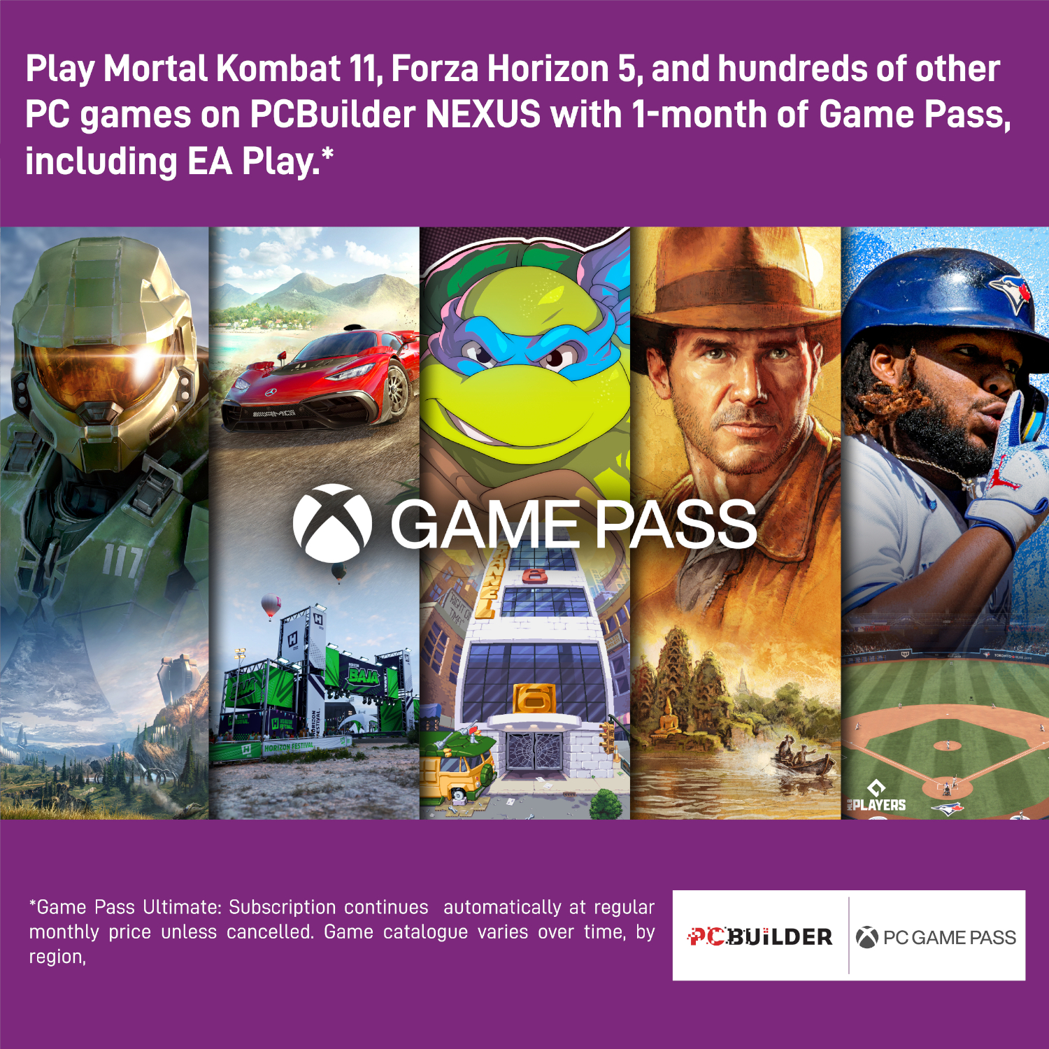 - Play over 100 high-quality PC games like Halo Infinite, Forza Horizon 5 and Teenage Mutant Ninja Turtles: Shredder?s Revenge with your new build and one month of PC Game Pass including EA Play. With new games being added all the time, there?s always something new to play from day one.?